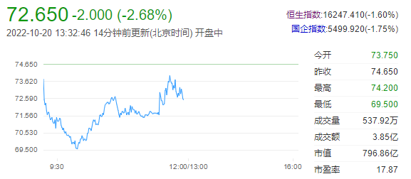 料智能手机消费力疲软及持续去规范的非旗舰智能手机会持续至明年,麦格理将公司今年、明年及2024年每股盈测下调5%、28%及27%,并将其目标价下调38%至63.62港元,维持其“跑输大市”评级。