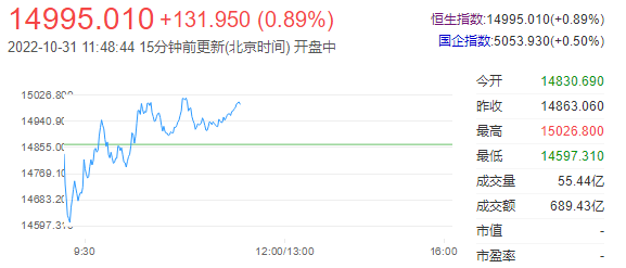 港股上午盘拉升反弹,恒生科技指数一度涨至4%,午间收涨3.45%重回2900点,恒指、国指分别涨0.89%和0.5%。南下资金半日净流入26.19亿港元,大市成交额为689亿港元。