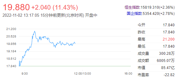 今日走势分析:诺辉健康-B(06606)逆市涨近6%,截至发稿,涨5.72%,报18.86港元,成交额479.32万港元。