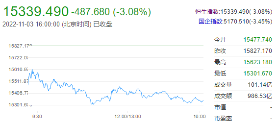 港股低开低走,三大指数全线大跌,恒指跌3.08%下挫近500点,报15339点,国指跌3.45%,恒生科技指数跌3.84%险守3000点。南下资金全日逆势净流入87.52亿港元,大市成交额不足千亿港元。港股后市展望:国信证券指出,港股最重要的底部信号出现,又见历史性的支撑。以历史可比恒指为锚,10月已经接近2008年10月恒指最低点,对应恒指历史最高股息率6.6%的极限值。在40年的时间中,这种历史性的“大底”位置仅出现过5次。故而,坚定看好港股中长期走势,并重新上调港股至超配评级。