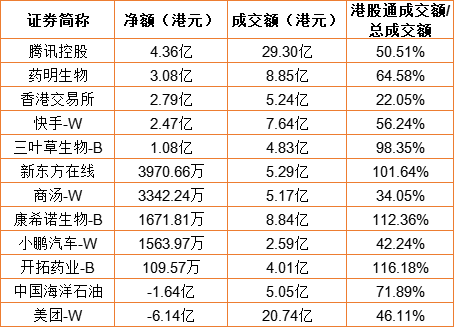 亚汇网11月8日港股通数据统计显示:腾讯控股净买入额居首,达4.36亿港元,美团-W净卖出额居第一位。(亚汇网编辑:陌尘)
