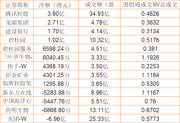 亚汇网11月9日港股通数据统计显示:腾讯控股净买入额居首,达3.80亿港元,美团-W净卖出额居第一位。(亚汇网编辑:陌尘)