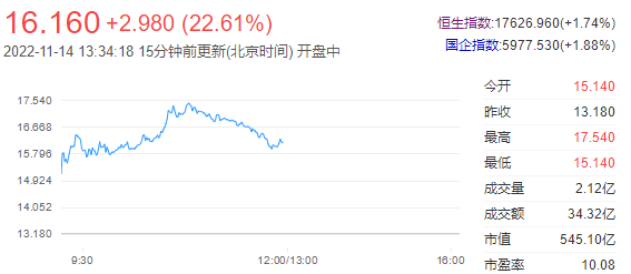 今日走势分析:物管股早盘随内房股走高,截至发稿,碧桂园服务(06098)涨23.98%,报16.34港元;旭辉永升服务(01995)涨21.45%,报4.02港元;雅生活服务(03319)涨19.05%,报8.06港元;融创服务(01516)涨15.31%,报2.41港元。