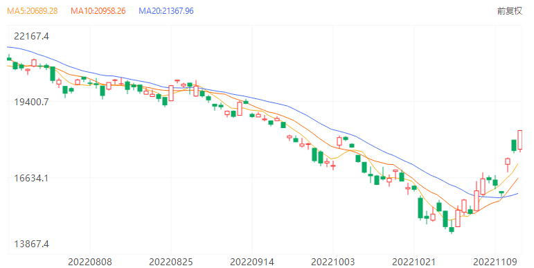 港股上午以接近高位18257,升637点收市。午后延续升势,再向上扩大升幅至高见18356,最多升737点。而恒生科技指数亦同步急升至高见3829,最多升274点。恒指自10月31日创出近13年新低后,已连升多日,累计升幅更超过两成。而恒生科技指数更累升近3成。昨天和今日的成交金额更超过2,000亿元以上,亦足以支持升势。是日最大升幅仍以科技股及新经济板块为主。多只股票升幅更超过1成。当中包括(700)腾讯高见288.20港元,连同(9988)阿里巴巴高见80.85港元,齐升近10%,亦齐创月内新高。