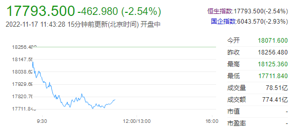盘面上,权重科技股重挫拖累市场下跌,与动视暴雪停止合作,网易重挫11%,百度跌超6%,阿里巴巴跌超4%,腾讯高开低走转跌至2.8%;11月第二周乘用车市场零售同比下降12%,汽车股大跌,造车新势力跌幅最大;前期表现强势的互联网医疗股集体回调,内房股与物管股继续下跌,手游股、电力股、半导体股、内险股、煤炭股齐跌。另一方面,惟农产品股、电信服务股部分飘红,香港电讯逆势涨约1%。