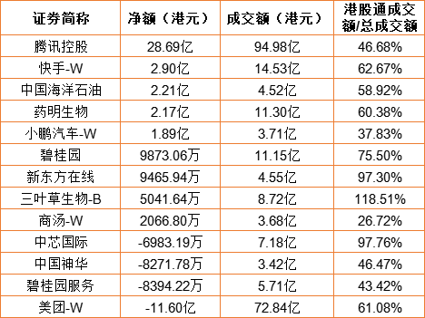 亚汇网11月17日港股通数据统计显示:腾讯控股净买入额居首,达28.69亿港元,美团-W净卖出额居第一位。(亚汇网编辑:陌尘)
