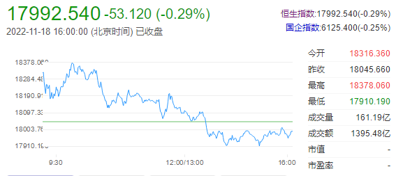 港股早盘冲高后呈现持续回调行情,午后三大指数皆由涨转跌,恒指最终收跌0.29%,失守18000点大关,国指跌0.25%,恒生科技指数涨0.57%,盘中最高涨幅高达4.4%。港股后市展望:中泰国际认为,尽管美联储加息节奏或有放缓,但利率终值会上调,美联储离结束加息尚远,更遑论降息,港股仍然面临海外加息带来的流动性压力。当前恒生指数的风险溢价已从10月31日的94.0%分位数回落至46.1%分位数,估值已经显著修复,港股大盘短期可能会面临较大的高台获利压力,但是较高的成交活跃度应该能够推动资金分流至其他中小型或二三线股份,料板块轮动将是接下来的市场特征。