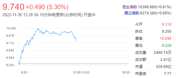 今日走势分析:中国燃气(00384)早盘继续走强升7%,本周以来股价累涨约15%。机构点评中国燃气中期业绩指,公司整体售气量仍能保持双位数增长,全年销气毛差或将持平,为业绩提供良好支撑。估值已处于历史底部,维持“买入”。截至发稿,中国燃气涨7.03%,报9.90港元,成交额1.31亿港元。
