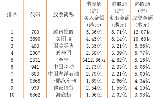 亚汇网实时数据统计:截至12月2日收盘,腾讯控股、美团-W、国美零售位居港股通(沪)成交前三,美团-W、海昌海洋公园-新、腾讯控股位居股通(深)成交前三。