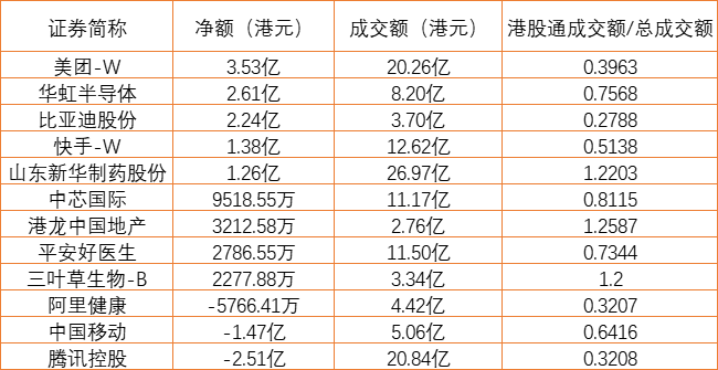 亚汇网12月13日港股通数据统计显示:美团-W净买入额居首,达3.53亿港元,腾讯控股净卖出额居第一位。(亚汇网编辑:陌尘)