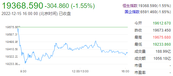 港股三大指数全天表现低迷,经历连续上涨后做多情绪谨慎。截止收盘,恒指跌1.55%,国指跌1.65%,恒生科技指数跌2.39%。南下资金逆势净流入30.09亿港元,大市成交额为1056亿港元。港股后市展望:华泰证券表示,当前至明年底,港股有望在夯实底部后迎来修复。对应2023年全年港股市场有望在盈利修复起量和估值修复回升双重带动下向上,AH溢价指向后三个季度超额收益行情将更坚实。