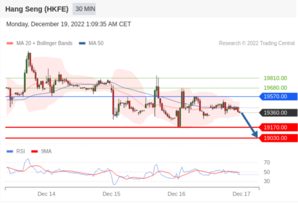 交易策略: 在 19570.00 之下,看跌,目标价位为 19170.00 ,然后为 19030.00 。