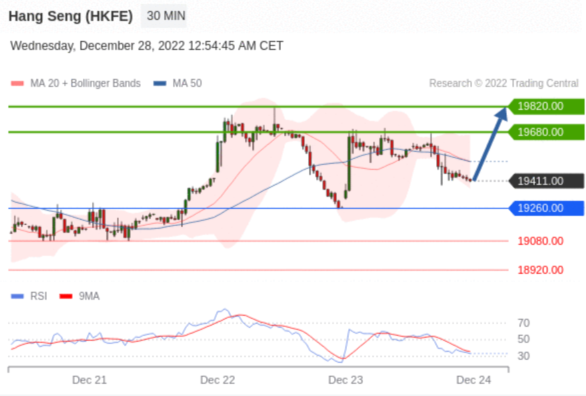 交易策略: 在 19260.00 之上,看涨,目标价位为 19680.00 ,然后为 19820.00 。