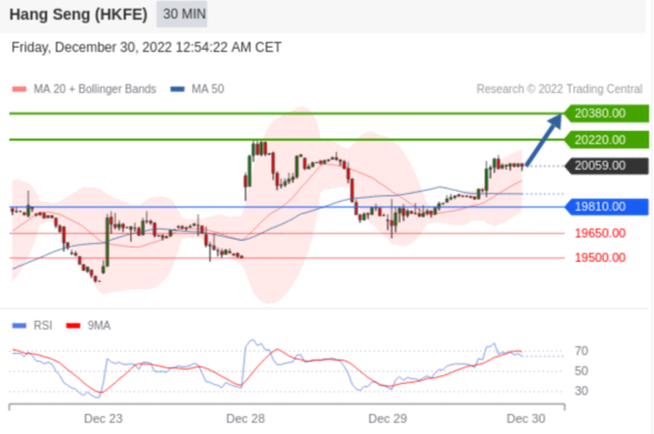 交易策略: 在 19810.00 之上,看涨,目标价位为 20220.00 ,然后为 20380.00 。