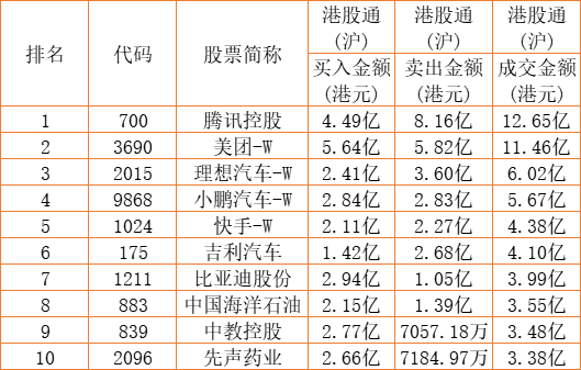 亚汇网实时数据统计:截至1月10日收盘,美团-W、腾讯控股、国美零售位居港股通(沪)成交前三,腾讯控股、美团-W、鼎丰集团汽车位居股通(深)成交前三。