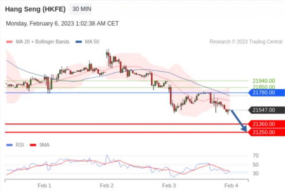 交易策略: 在 21780.00 之下,看跌,目标价位为 21360.00 ,然后为 21250.00 。