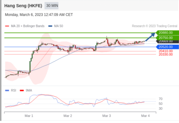 交易策略: 在 20520.00 之上,看涨,目标价位为 20750.00 ,然后为 20880.00 。