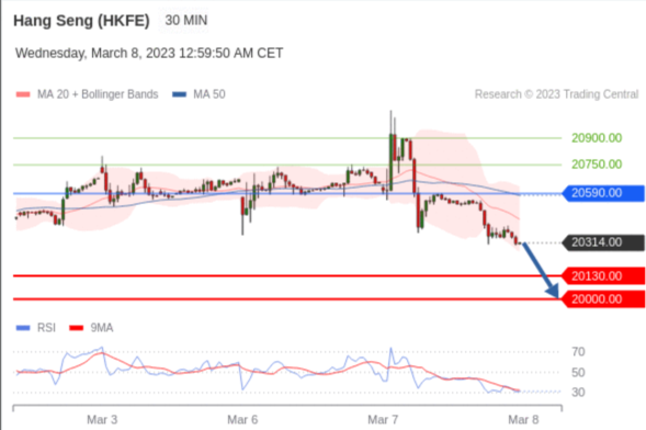 交易策略: 在 20590.00 之下,看跌,目标价位为 20130.00 ,然后为 20000.00 。