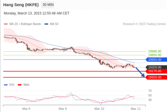 交易策略: 在 19650.00 之下,看跌,目标价位为 19170.00 ,然后为 18920.00 。