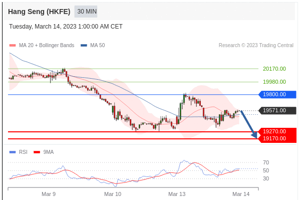 交易策略: 在 19800.00 之下,看跌,目标价位为 19270.00 ,然后为 19170.00 。