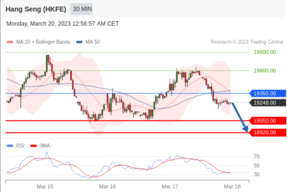 交易策略: 在 19350.00 之下,看跌,目标价位为 19050.00 ,然后为 18920.00 。