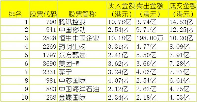 亚汇网实时数据统计:截至3月20日收盘,腾讯控股、中国移动、中芯国际(沪)成交前三,腾讯控股、中国移动、恒生中国企业(深)成交前三。