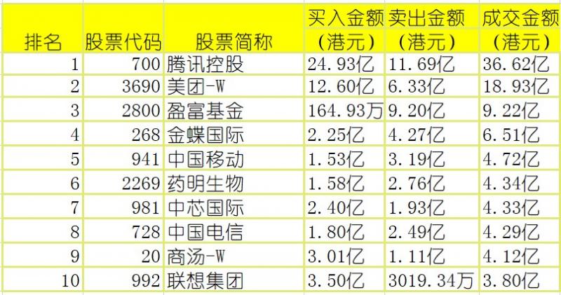 亚汇网3月23日港股通数据统计显示:腾讯控股成交额居首,达36.62亿港元