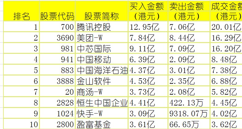 亚汇网实时数据统计:截至4月3收盘,腾讯控股、美团-W、中芯国际(沪)成交前三,腾讯控股、美团-W、中国海洋石油(深)成交前三。