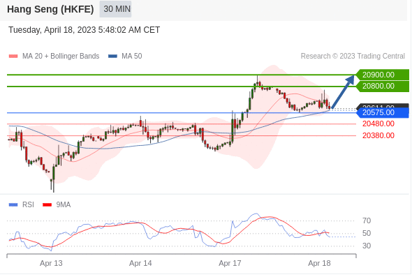交易策略: 在 20575.00 之上,看涨,目标价位为 20800.00 ,然后为 20900.00 。