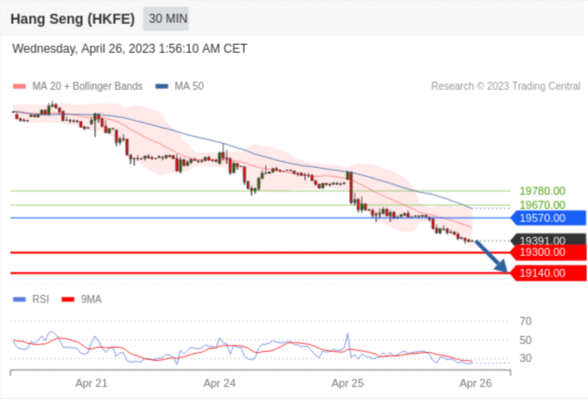 交易策略: 在 19570.00 之下,看跌,目标价位为 19300.00 ,然后为 19140.00 。