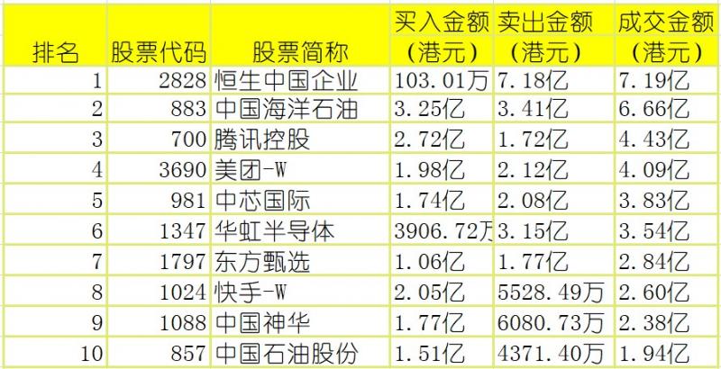亚汇网4月27日港股通数据统计显示:恒生中国企业成交额居首,达7.19亿港元