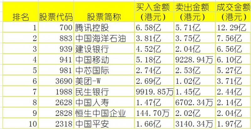 亚汇网实时数据统计:截至5月4收盘,腾讯控股、中国海洋石油、建设银行(沪)成交前三,腾讯控股、中国海洋石油、美团-W(深)成交前三。
