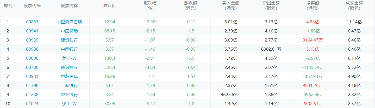 截至收盘,恒指跌2.12%,报19867.58点。恒生科技指数(3798.7 -115.64 -2.95%)跌2.95%,中芯国际(19.26 -1.54 -7.40%)大跌7.4%,商汤跌6.6%,阿里健康(5.18 -0.30 -5.47%)、小鹏汽车跌超5%。
