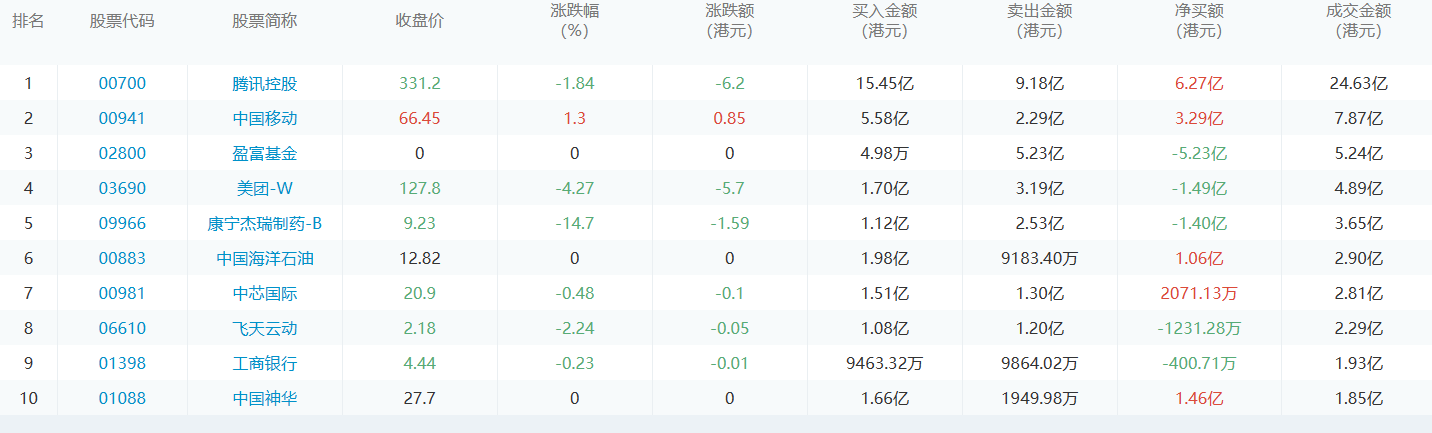 亚汇网5月19日港股通数据统计显示:腾讯控股净买入额居首,达15.45亿港元,腾讯控股净卖出额居第一位。(亚汇网编辑:静香)