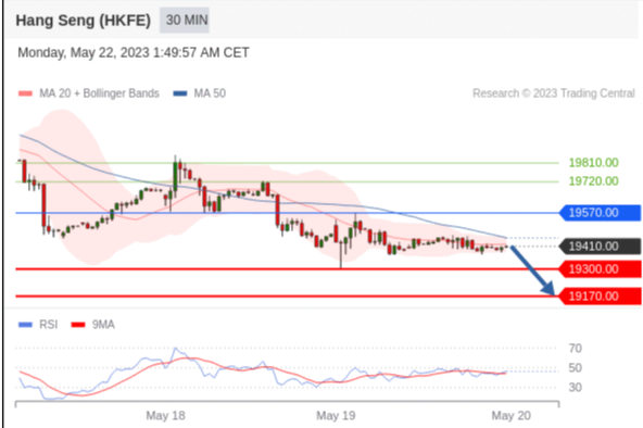 交易策略: 在 19570.00 之下,看跌,目标价位为 19300.00 ,然后为 19170.00 。