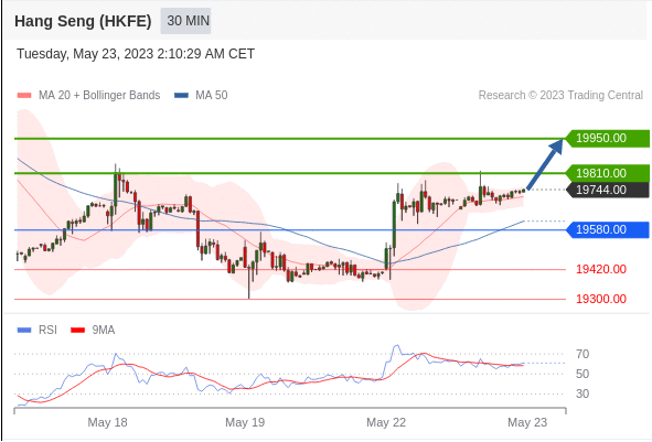 交易策略: 在 19580.00 之上,看涨,目标价位为 19810.00 ,然后为 19950.00 。
