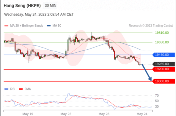 交易策略: 在 19440.00 之下,看跌,目标价位为 19200.00 ,然后为 19000.00 。