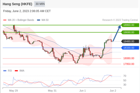 交易策略: 在 18330.00 之上,看涨,目标价位为 18690.00 ,然后为 18860.00 。
