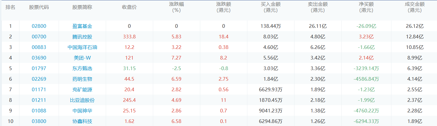 亚汇网6月2日港股通数据统计显示:腾讯控股净买入额居首,达8.03亿港元,盈富基金净卖出额居第一位。(亚汇网编辑:静香)
