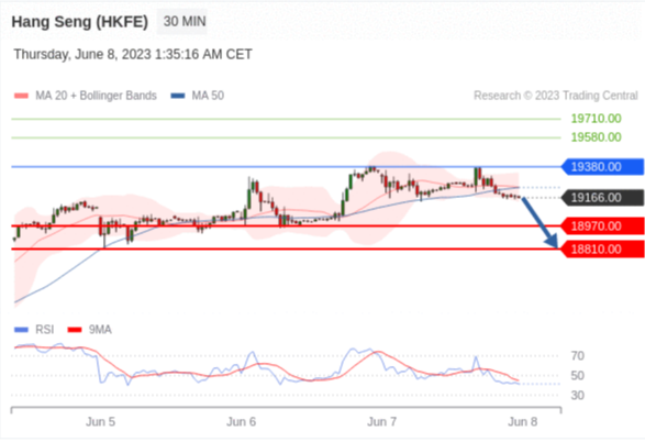 交易策略: 在 19380.00 之下,看跌,目标价位为 18970.00 ,然后为 18810.00 。