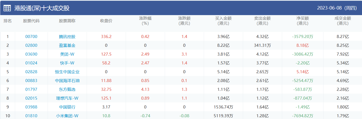 亚汇网实时数据统计:截至6月9日收盘,盈富基金、腾讯控股、建设银行位居港股通(沪)成交前三,腾讯控股、盈富基金、美团-w位居股通(深)成交前三。