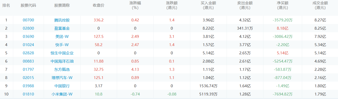 亚汇网6月9日港股通数据统计显示:盈富基金净买入额居首,达8.22亿港元,腾讯控股净卖出额居第一位。(亚汇网编辑:静香)