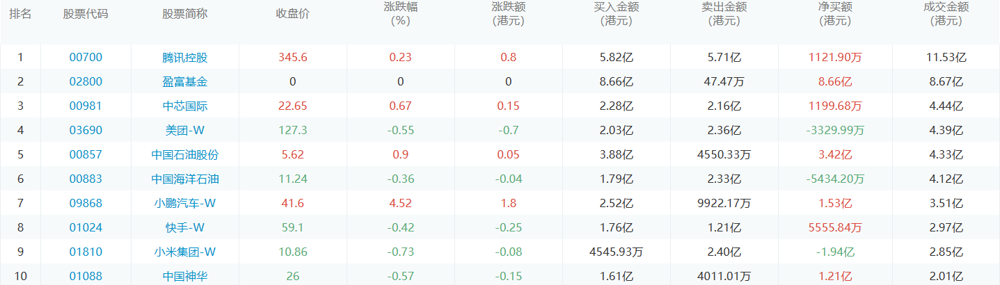 亚汇网6月14日港股通数据统计显示:盈富基金净买入额居首,达8.66亿港元,腾讯控股净卖出额居第一位。(亚汇网编辑:静香)