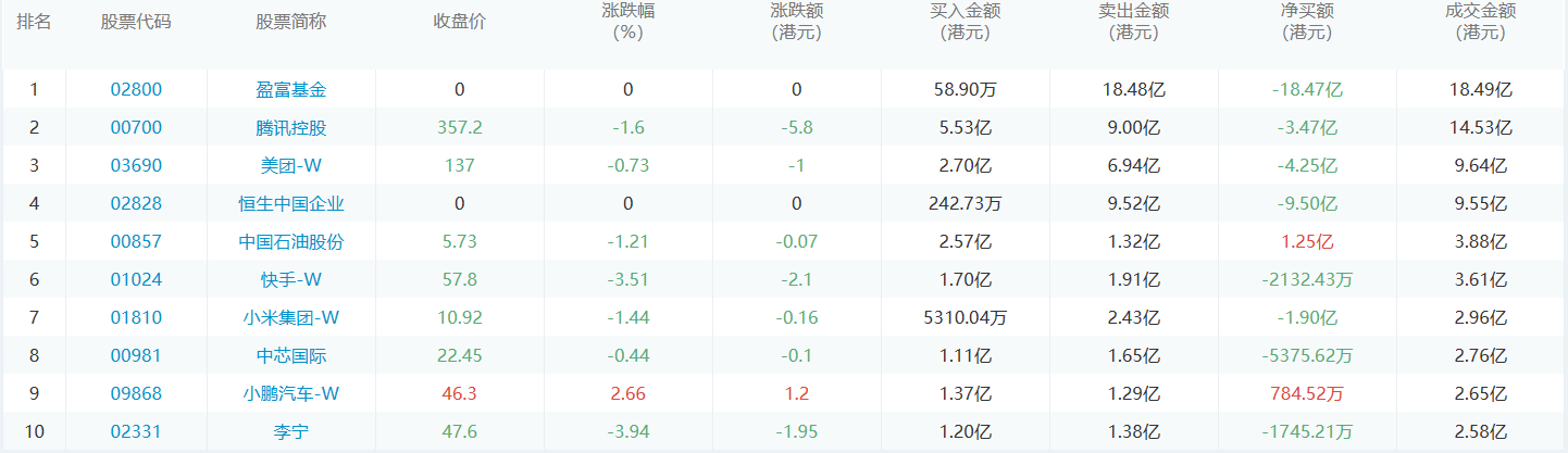 亚汇网6月19日港股通数据统计显示:腾讯控股净买入额居首,达5.53亿港元,盈富基金净卖出额居第一位。(亚汇网编辑:静香)