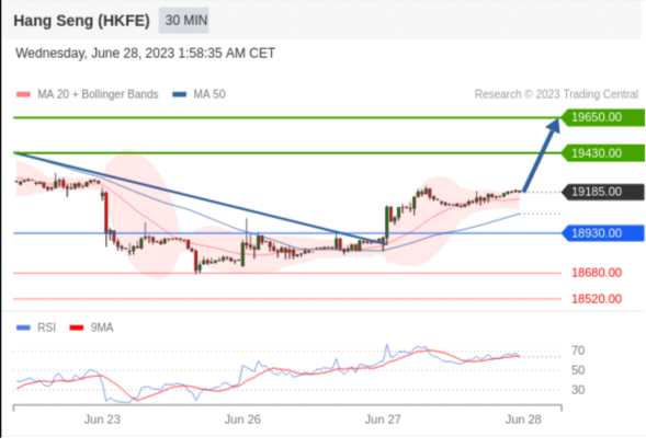 交易策略: 在 18930.00 之上,看涨,目标价位为 19430.00 ,然后为 19650.00 。