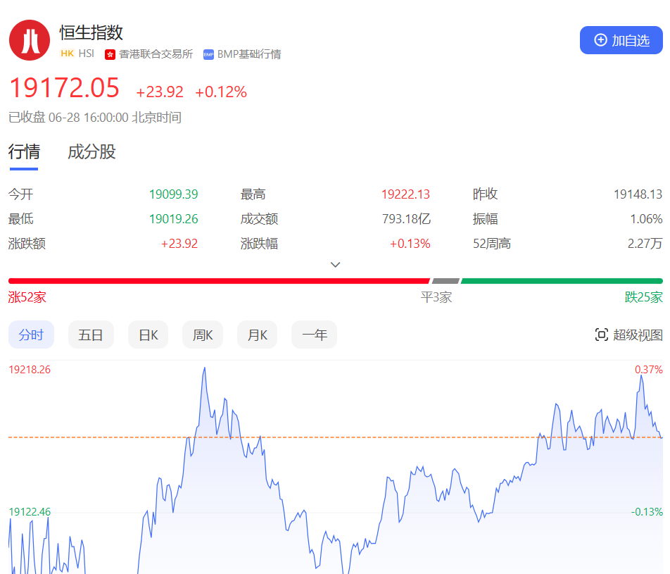 大盘小幅反弹,成交量略微收缩,早盘,主要股指高开后震荡,恒指最高触及19922点,恒科指一度涨2.8%。午盘,股指维持震荡交投,盘中恒指一度回撤至平盘价附近。截至收盘,恒生指数涨0.40%或77.88点,报19767.09点,全日成交额955.18亿港元;国企指数涨0.52%,报6736.96点;恒生科技指数涨1.24%,报4246.13点。