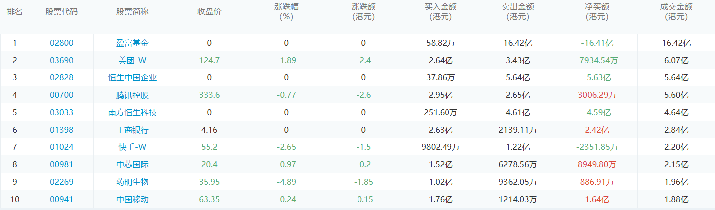 亚汇网6月29日港股通数据统计显示:美团-w净买入额居首,达2.64亿港元,盈富基金净卖出额居第一位。(亚汇网编辑:静香)