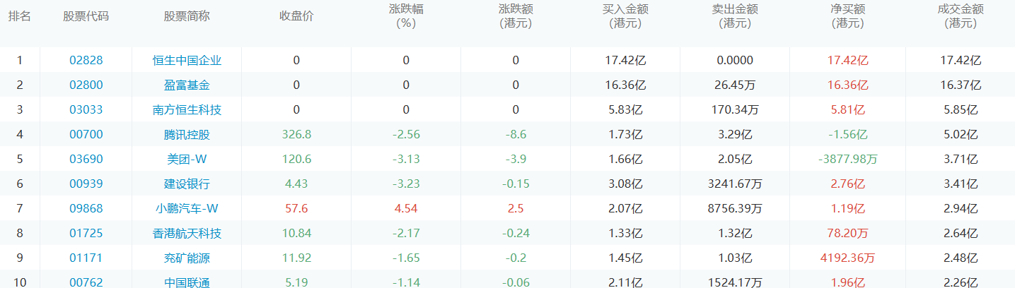 亚汇网7月6日港股通数据统计显示:恒生中国企业净买入额居首,达17.42亿港元,香港航天科技净卖出额居第一位。(亚汇网编辑:静香)
