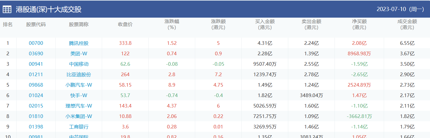 亚汇网实时数据统计:截至7月11日收盘,腾讯控股、建设银行、美团-w位居港股通(沪)成交前三,腾讯控股、美团-w、中国移动位居股通(深)成交前三。