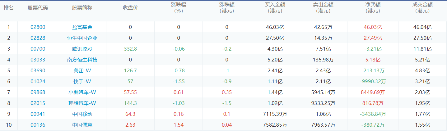 亚汇网7月20日港股通数据统计显示:盈富基金净买入额居首,达46.03亿港元,腾讯控股净卖出额居第一位。(亚汇网编辑:静香)